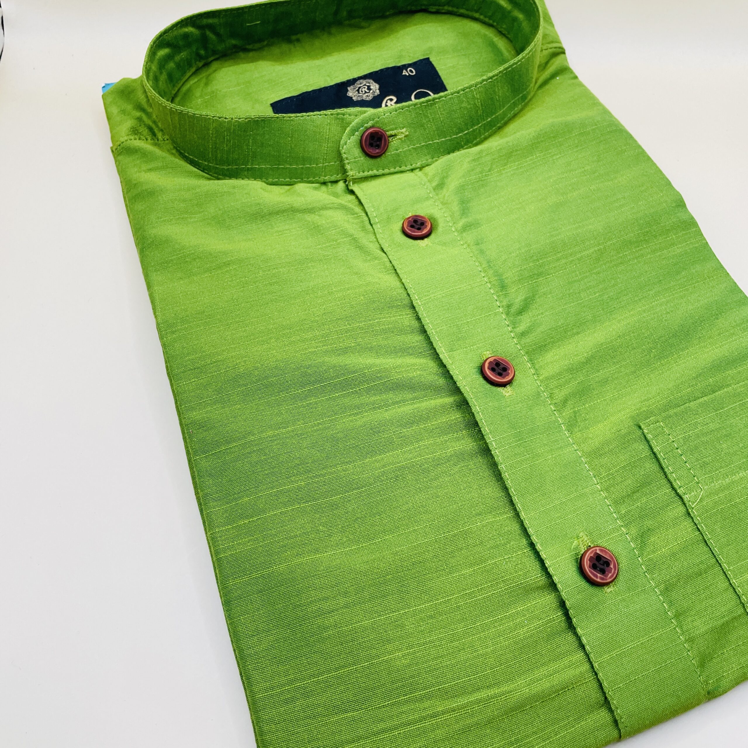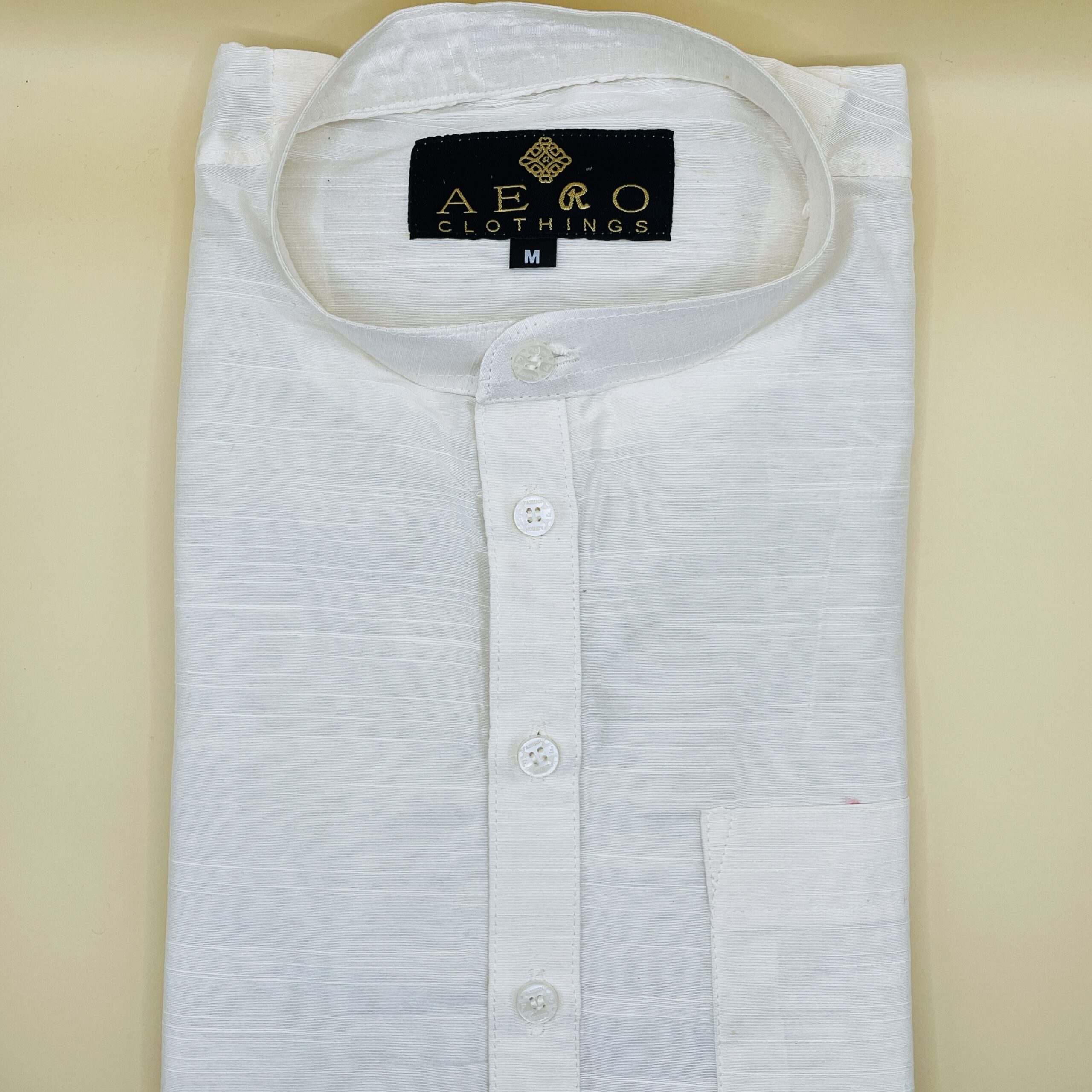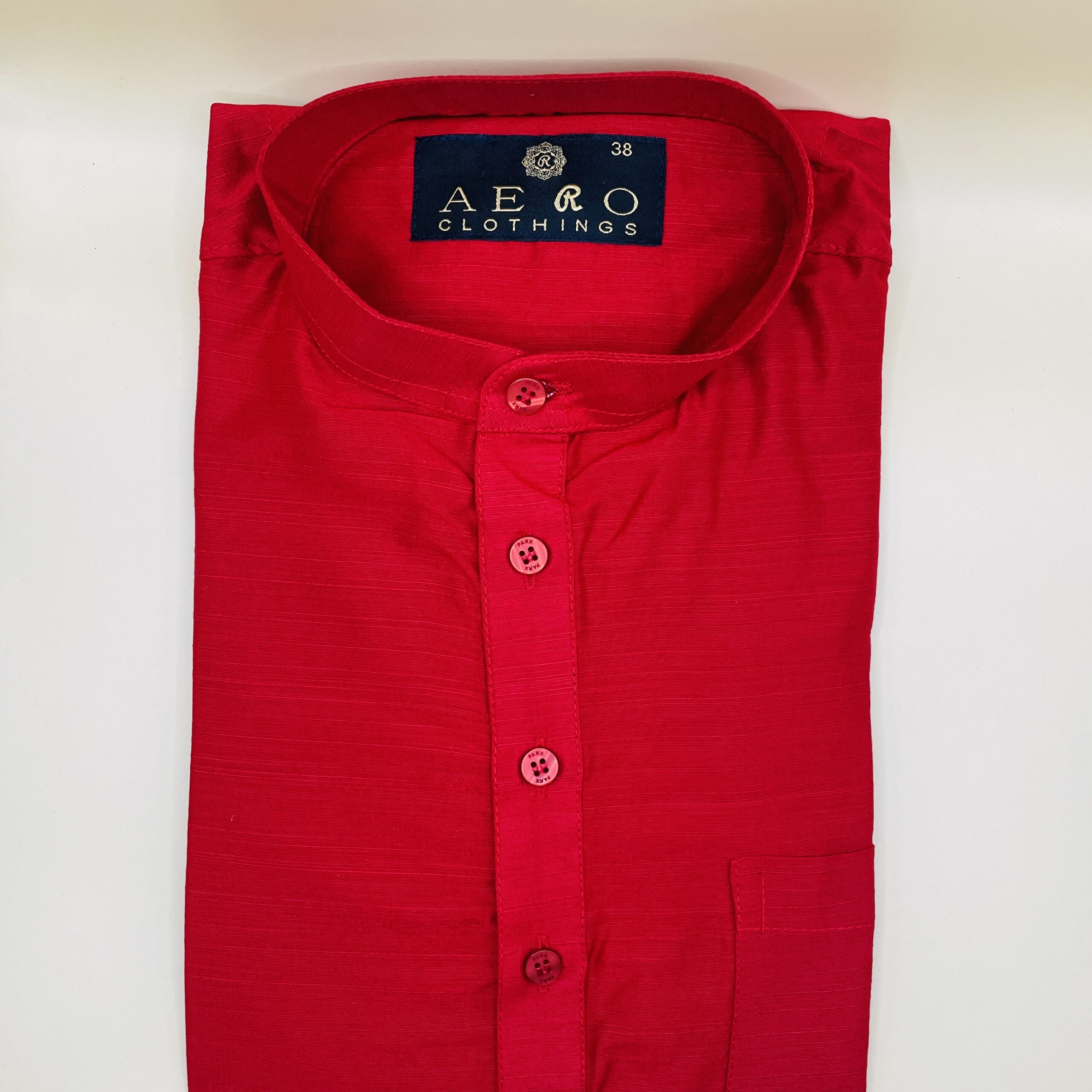 Upgrade your ethnic wardrobe with this stylish short kurta, tailored for both comfort and elegance. Crafted from soft cotton-silk blend fabric with a subtle textured weave, this kurta is designed with a mandarin collar and button-down front, giving it a sleek and versatile appeal. Available in multiple bold shades – White, Royal Blue, Leaf Green, and Classic Red – it’s perfect for festive occasions, casual gatherings, or everyday wear.